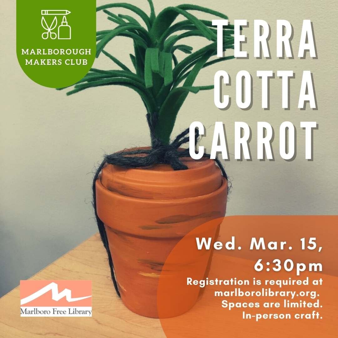 Get ready for spring by crafting yourself a decorative carrot container out of a clay pot. Bring it home, fill it with goodies and gift it, or put it on display!