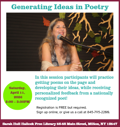 Join local poet Linda McCauley Freeman as she kicks off our Poetry Month series! In this session, participants will practice getting poems on the page and developing these ideas. With personalized, constructive feedback, you will leave this session with the ability to generate new writing and beat writers block. Whether it’s your first time writing or you’re a seasoned pro, this course will help you to find the words you’ve been looking for. You will be sure to leave the workshop with the start of some new poems!
