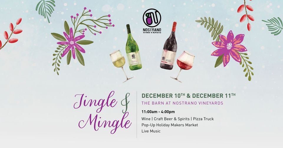 Jingle & Mingle into the Holidays with our Annual celebration at The Barn at Nostrano Vineyards! Pop-Up Holiday Makers & Creators | Live Holiday Musical Entertainment | Wine & Holiday Wine Cocktails | Local Craft Beer | Wood Fired Pizza & Local Eats!