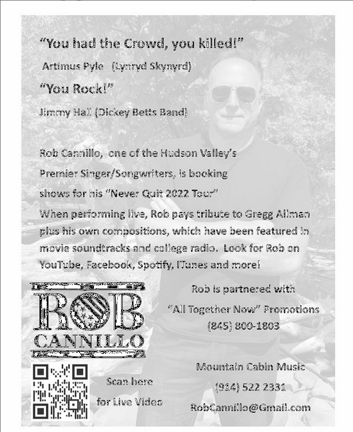 Rob Cannillo and the lovely SUSAN will be doing a duo at this wonderful brewery with sweeping views of the Hudson River and delicious food from Pop’s Place Food Truck .