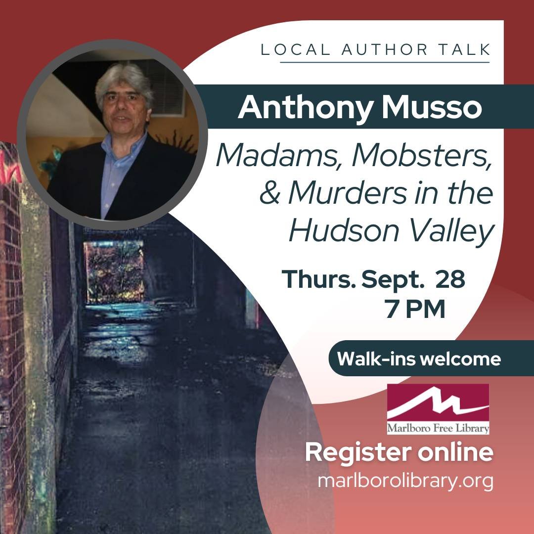 Join us at the Library as we welcome back Anthony Musso as he discusses his new book Madams, Mobsters, and Murders in the Hudson Valley.