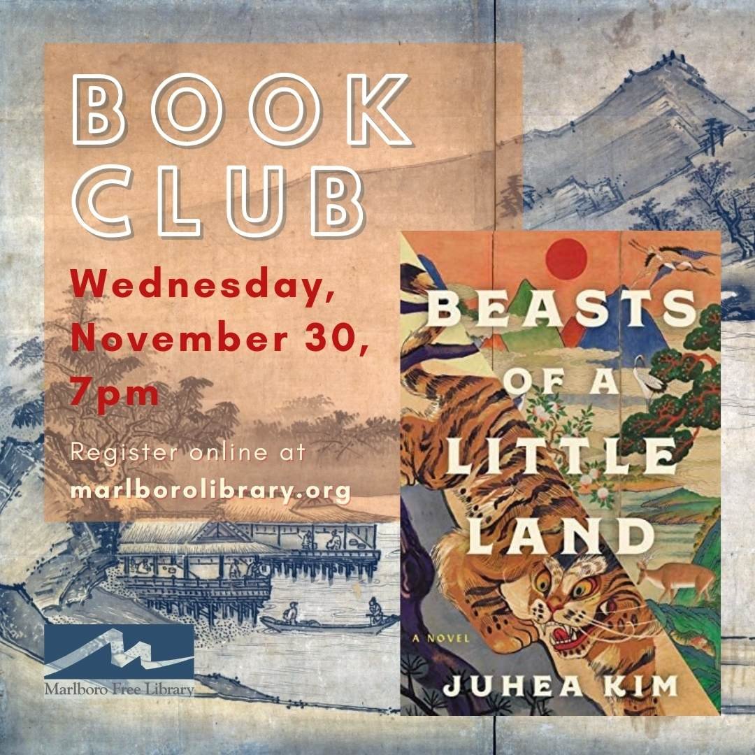 All are welcome to attend the Marlboro Library Book Club! During November’s meeting, we will be discussing Beasts of a Little Land by Juhea Kim.