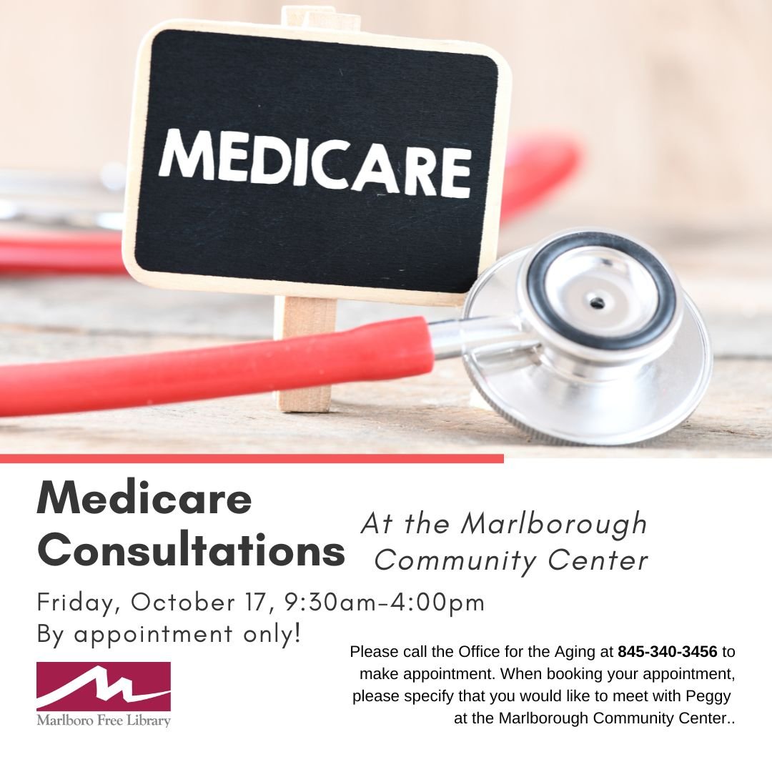 A representative from the Ulster County Office for the Aging will be available at the Marlborough Community Center to assist individuals with signing up for Medicare and selecting a plan that best fits their needs and lifestyle. Receive personalized counseling and guidance to help you understand the various Medicare plans available. Appointments are required — walk-ins will not be accepted.