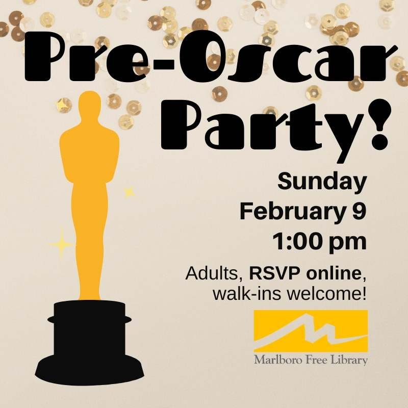 Need a recap of all the nominees? Come get fully prepped at our pre-Oscar party! On Sunday, February 9 at 1:00 pm, walk the red carpet (designer garb optional), have your photo taken, talk movies and watch the trailers for nominated films. Cast your votes for the Oscar winners, the one with the most correct guesses will receive a gift card for a local movie theater! Click here for the Oscar Predictions Ballot, or pick one up at the Library. **Ballot must be returned at the pre-Oscar party, between 1-2:00 pm in order to be qualified to enter the raffle.