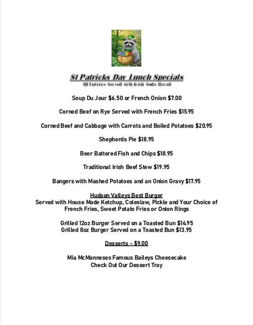 Raccoon Saloon St. Patrick’s Day Menu – Breakfast, Lunch, Dinner