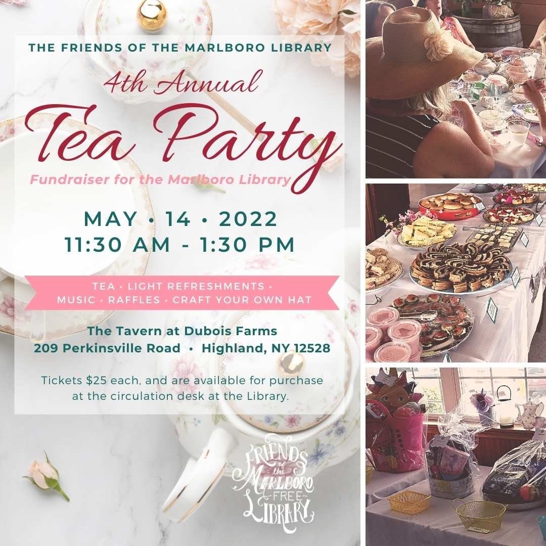 The Friends of the Marlboro Library will be holding their fourth annual tea party fundraiser at Dubois Farms in Highland, on Saturday, May 14th from 11:30 am to 1:30 pm.