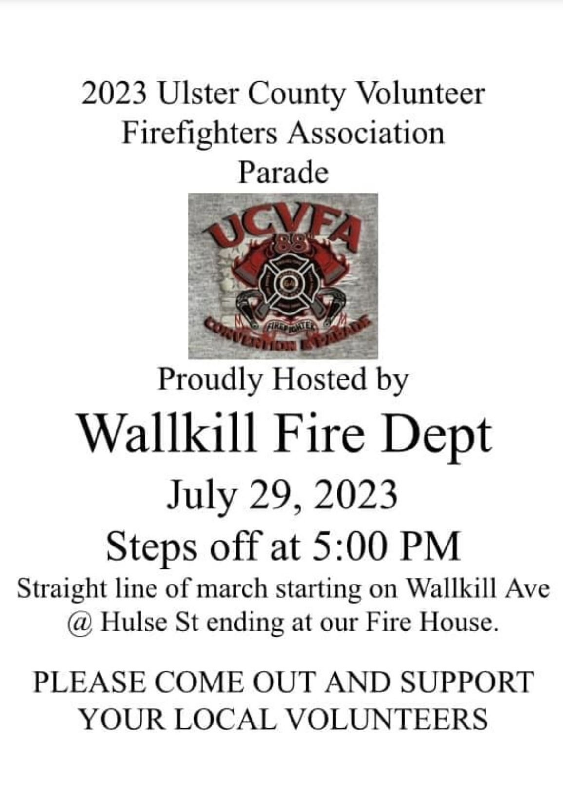Proudly hosted by Wallkill Fire Dept. Steps off at 5:00 pm – Straight line of march starting on Wallkill Ave at Hulse St. ending at the Wallkill Fire Dept.