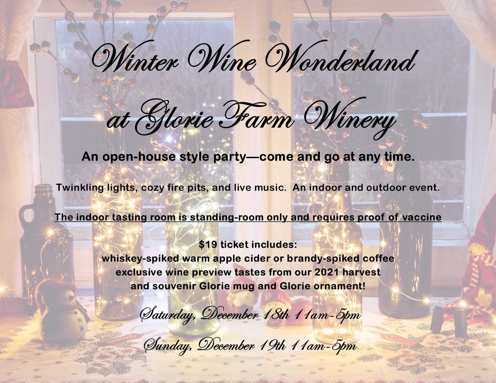 Advance tickets are the only way to get all of the deals and discounts! Purchase on our website. https://www.gloriewine.com/shop/winter-wine-wonderland-2