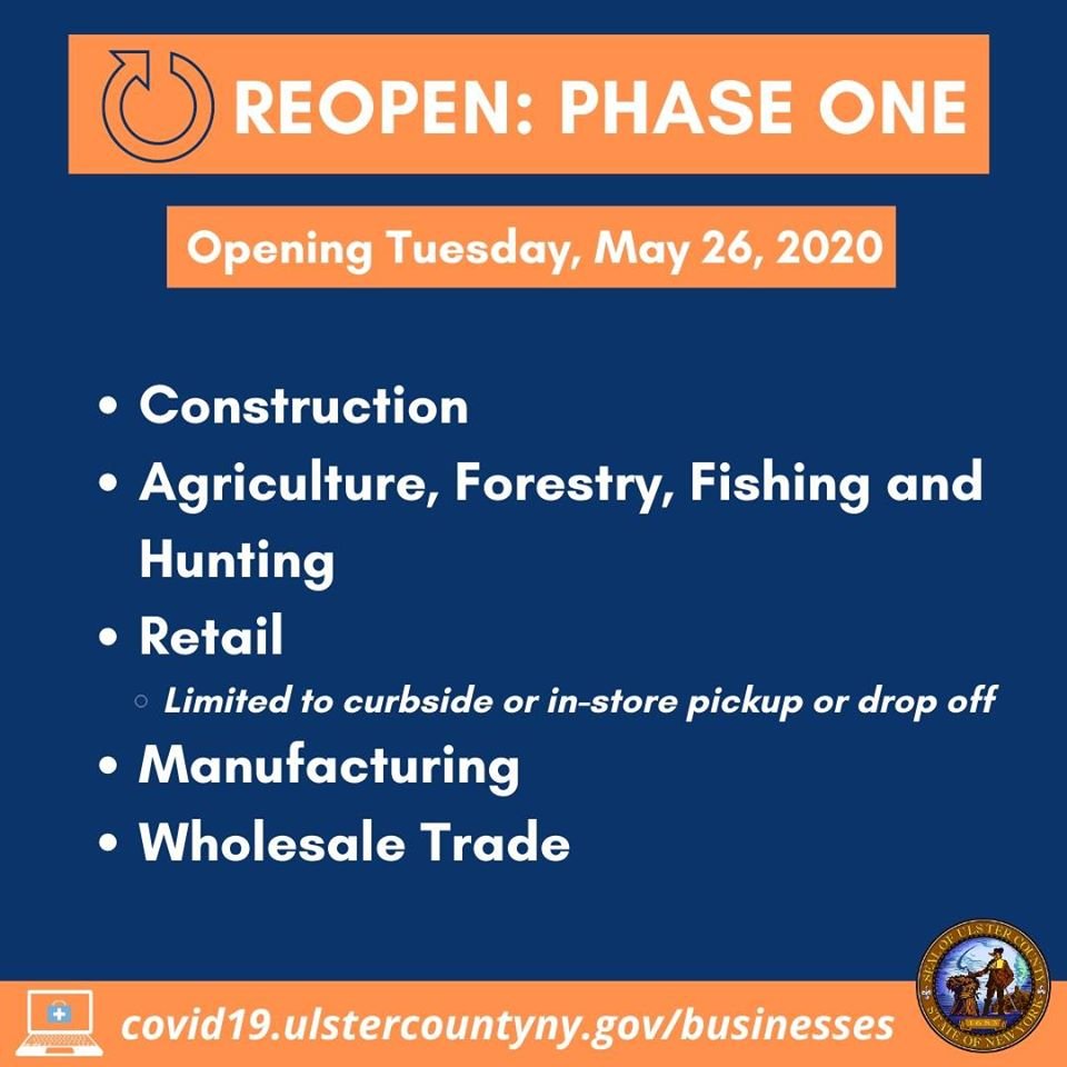 The Mid-Hudson Region will be re-opening for Phase 1 businesses TODAY